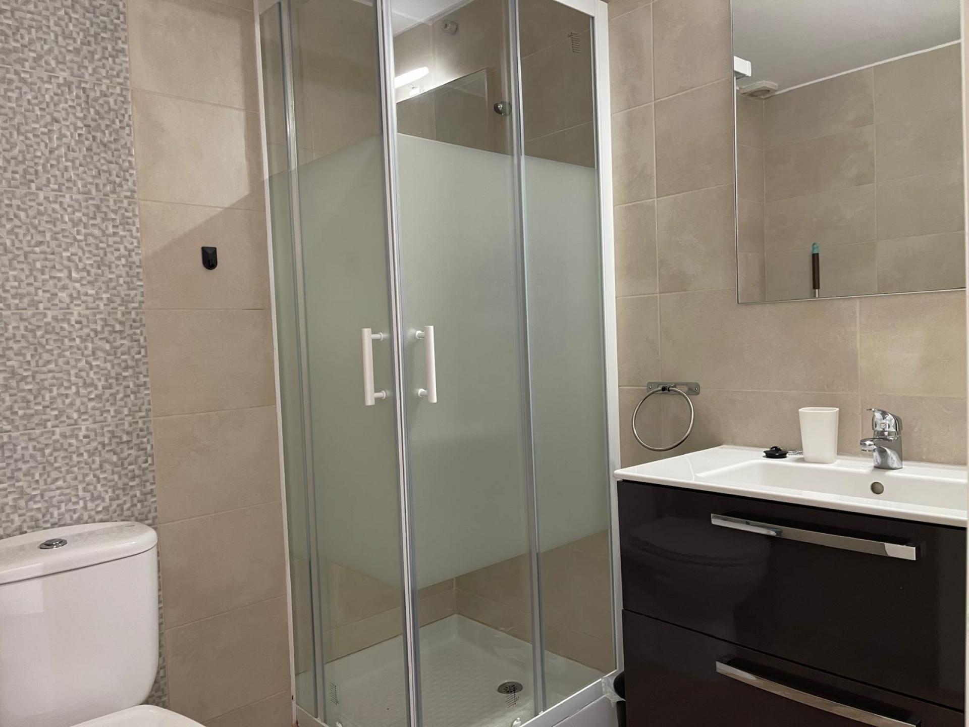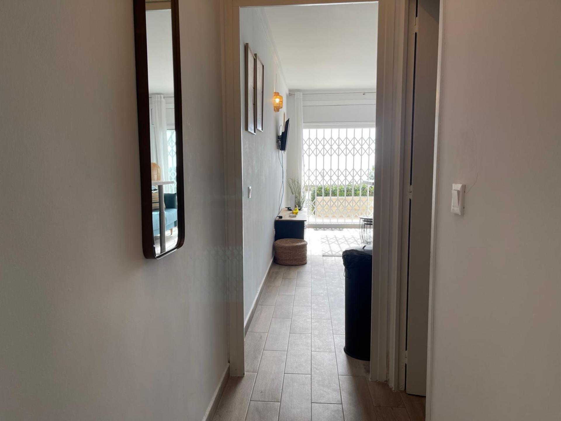 Il comprend un séjour lumineux avec cuisine ouverte, une chambre avec placard intégré, une salle de bains moderne et une terrasse de 5 m offrant une vue imprenable sur la mer. Équipé de la climatisation, du double vitrage et d’un mobilier de qualité, il est prêt à vous accueillir. Un emplacement de parking privé et une licence touristique sont également inclus. Un investissement judicieux dans l’un des quartiers côtiers les plus prisés !