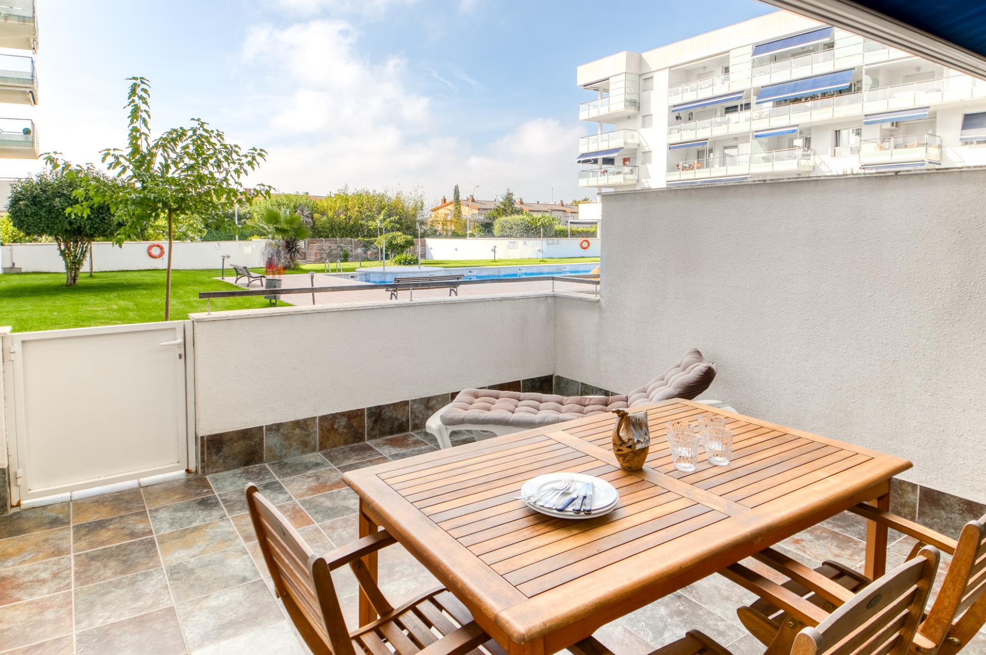 Bonito apartamento con gran terraza y piscina comunitaria.