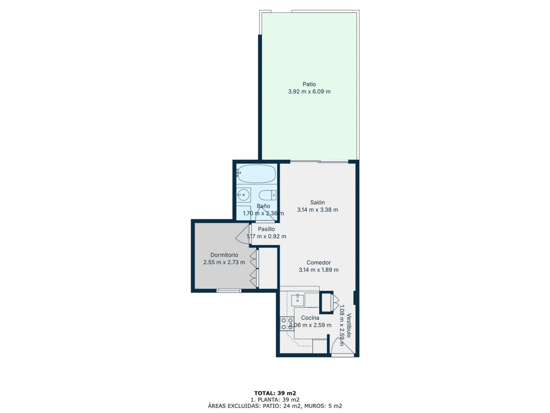 La vivienda cuenta con un salón-comedor con cocina americana, un baño completo y un dormitorio con buena entrada de luz natural.