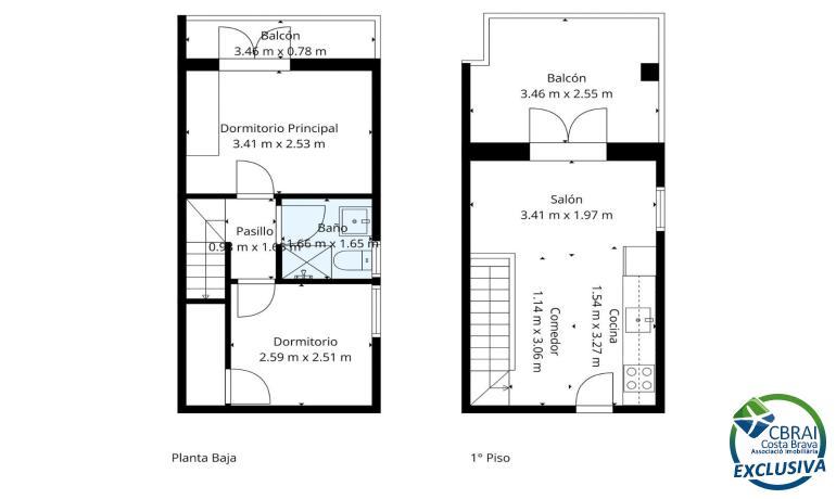 La vivienda se distribuye en dos plantas y cuenta con dos dormitorios, un baño completo, cocina equipada y un salón comedor luminoso con acceso a terraza con agradables vistas al mar. Está equipada con aire acondicionado con bomba de calor.