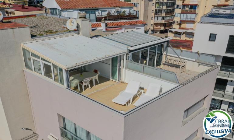 El gran protagonista es la terraza privada de 25 m ubicada en la parte alta del edificio: un espacio exterior exclusivo con zona de solárium y vistas abiertas a la montaña y al mar, ideal para disfrutar del privilegiado clima de Roses durante todo el año.